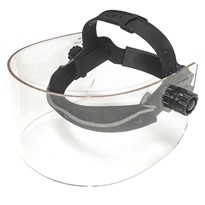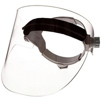The face shields are made from one or more of these materials: PET (polyethylene terephthalate), Frosted PP (polypropylene), open-cell polyurethane foam, and/or knitted polyester elastic