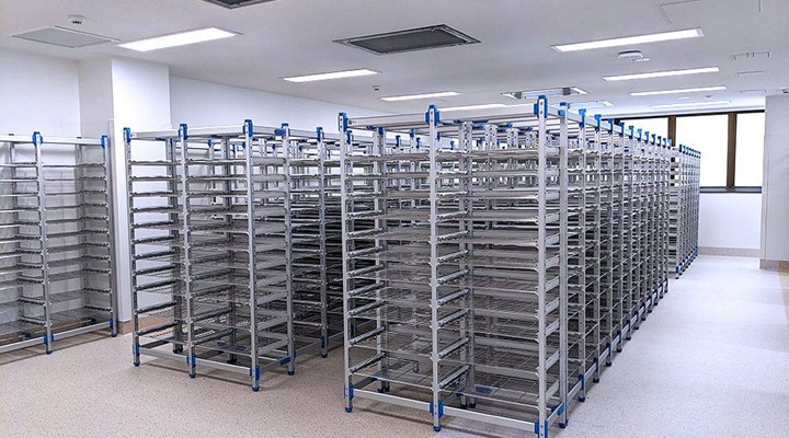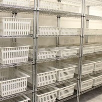 The Modular basket system offers significant increases in storage density when compared with typical open shelving and compactus setups. Minimal space is lost between baskets, creating very high density storage in a smaller footprint.