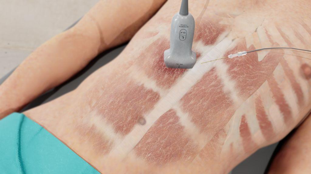 - Use an in-plane medial to lateral approach. The block needle is inserted until it rests just superficial to the Transversalis Fascia and deep to the Rectus Muscle.