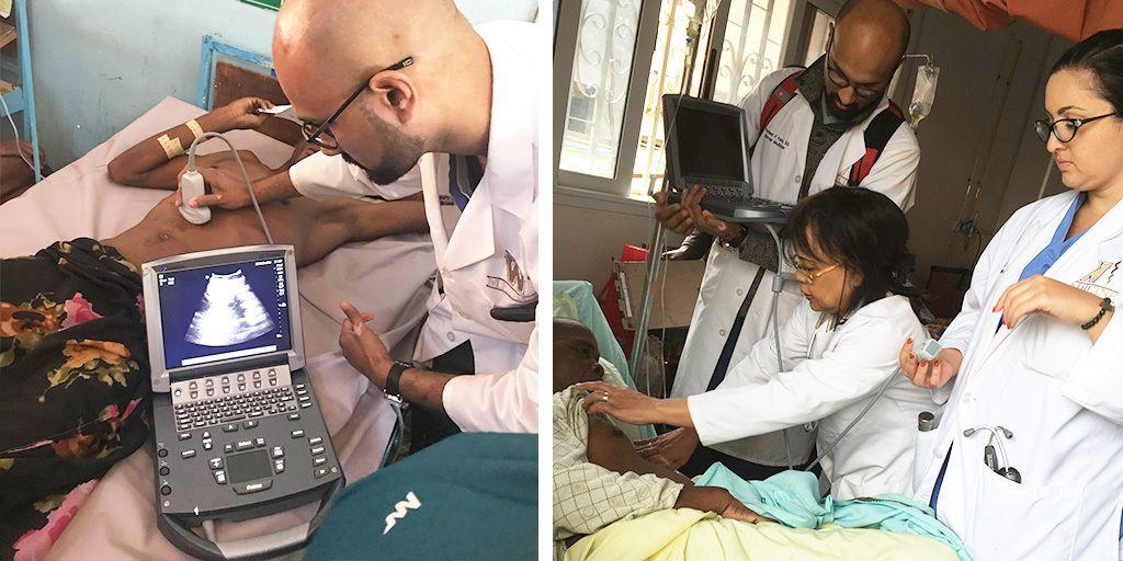 Pediatric and internal medicine resident Marie Arnaout, DO, and Assistant Professor of Internal Medicine Prashant Patel, DO, recently returned from Madagascar on a mission for Western Michigan University School of Medicine. They were accompanied by internal physician Richard Roach, MD (a long-serving senior faculty member who goes to Madagascar annually) and other pediatric and internal specialists. The mission worked with local SALFA (Lutheran) clinicians at clinics and hospitals in three communities. The team borrowed a Sonosite M-Turbo from the Global Health Loaner Pool. Drs. Arnaout and Patel sent us this joint report from their mission.